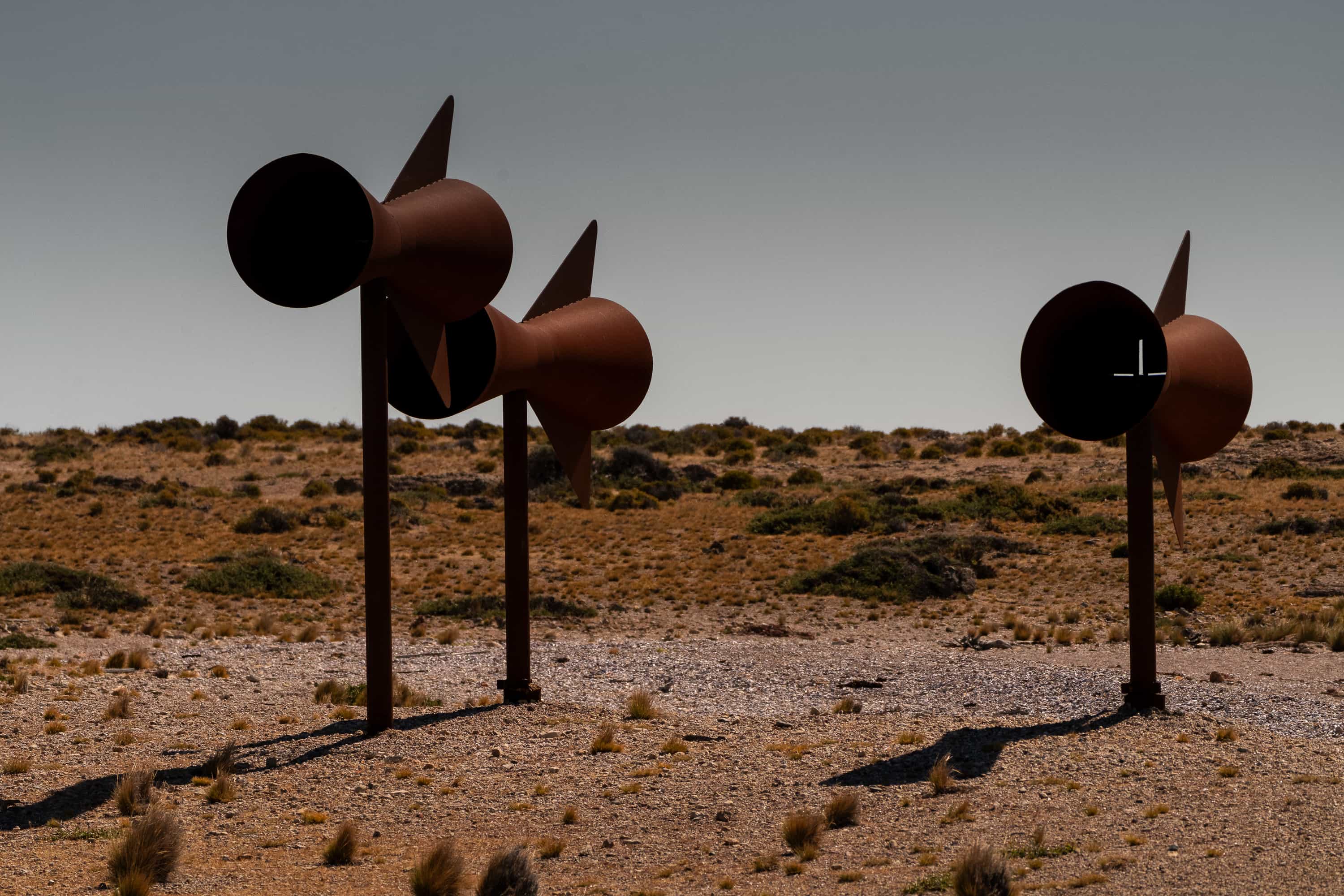 En el Cabo Aristizabal la estepa se encuentra con el mar abierto y se puede caminar por sus playas llenas de caracoles, ver esqueletos de enormes mamíferos y la impactante instalación artística del frances Christian Boltanski.